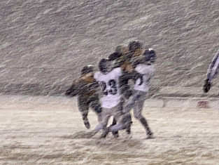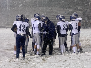 Senior wideout Drew Vargas found the endzone, twice, in the third quarter and had a first half interception. The fourth quarter featured a running clock, with both sides trading turnovers. Smith and Vargas turned in strong performances for the Mustangs, as did Riley Zimmerman, on the defensive side of the ball. Both the offensive and defensive lines had strong outings for the Mustangs. Senior quarterback Ethan Kulpin didn’t like his first half performance, but was much happier with the second half. It was a cold March night, those handling the ball did have some issues, there were enough fumbles to frustrate both sides.